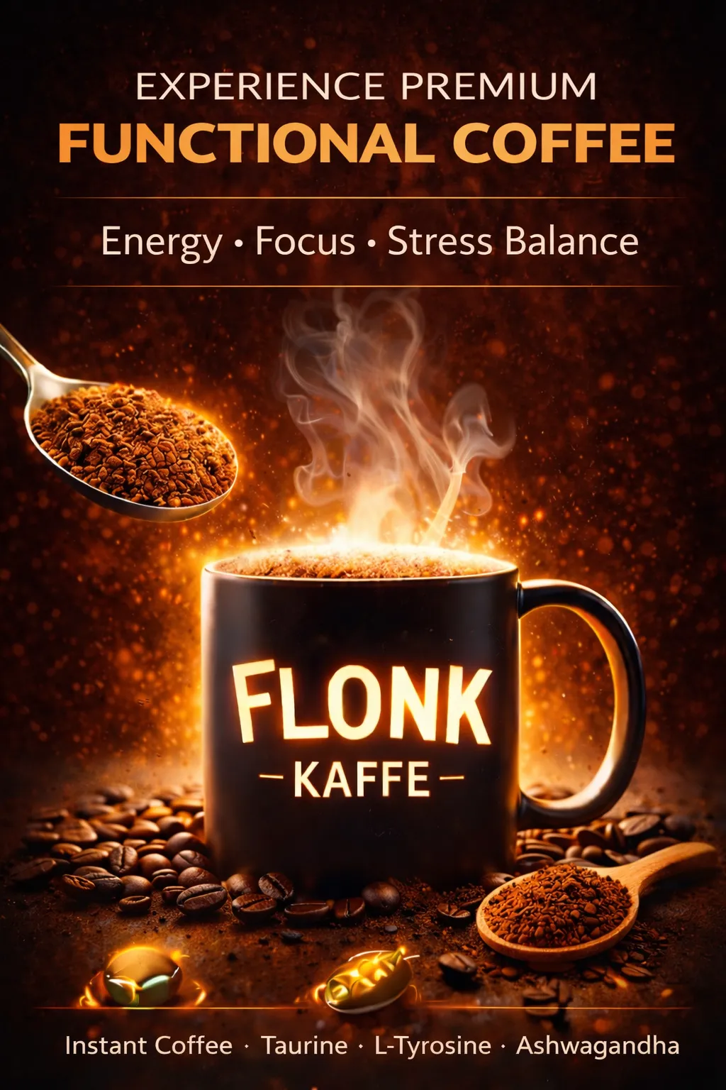 Flonk is smooth, convenient, and easy to prepare — just add hot water and enjoy a functional coffee experience wherever you are.
